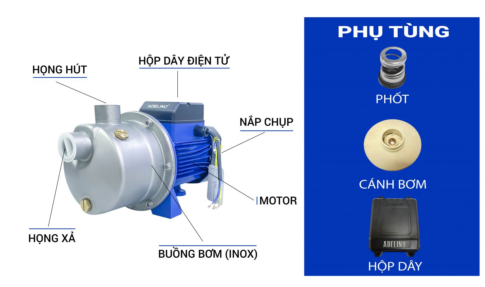 Được sản xuất với công nghệ tiên tiến, phần đầu bơm bằng inox cao cấp không chỉ chống gỉ sét hiệu quả mà còn bảo đảm chất lượng nguồn nước luôn sạch, an toàn cho sinh hoạt. Máy bơm ADELINO đầu inox được thiết kế nhỏ gọn, hoạt động êm ái, tuổi thọ cao và đặc biệt tự động tăng áp theo nhu cầu sử dụng.