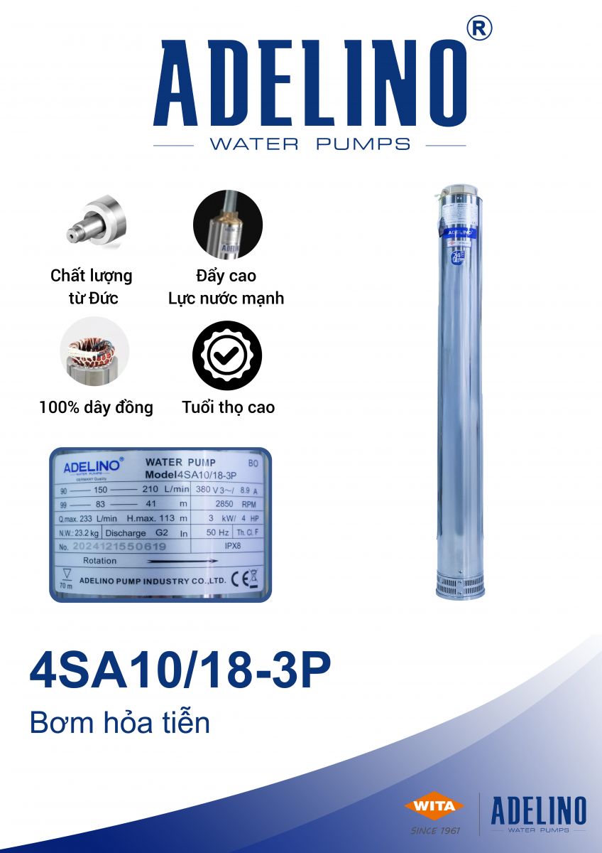 Máy bơm hỏa tiễn còn có tên gọi khác là máy bơm chìm giếng khoan. Đây là loại máy bơm thích hợp trong việc hút nước ở các giếng khoan công nghiệp hay giếng khoan gia đình ở những nơi có độ sâu lớn. Hôm nay chúng ta sẽ đi tìm hiểu chi tiết hơn về dòng máy bơm hỏa tiễn 4 inch mang thương hiệu ADELINO mà công ty Tân Thành Tài đang phân phối.