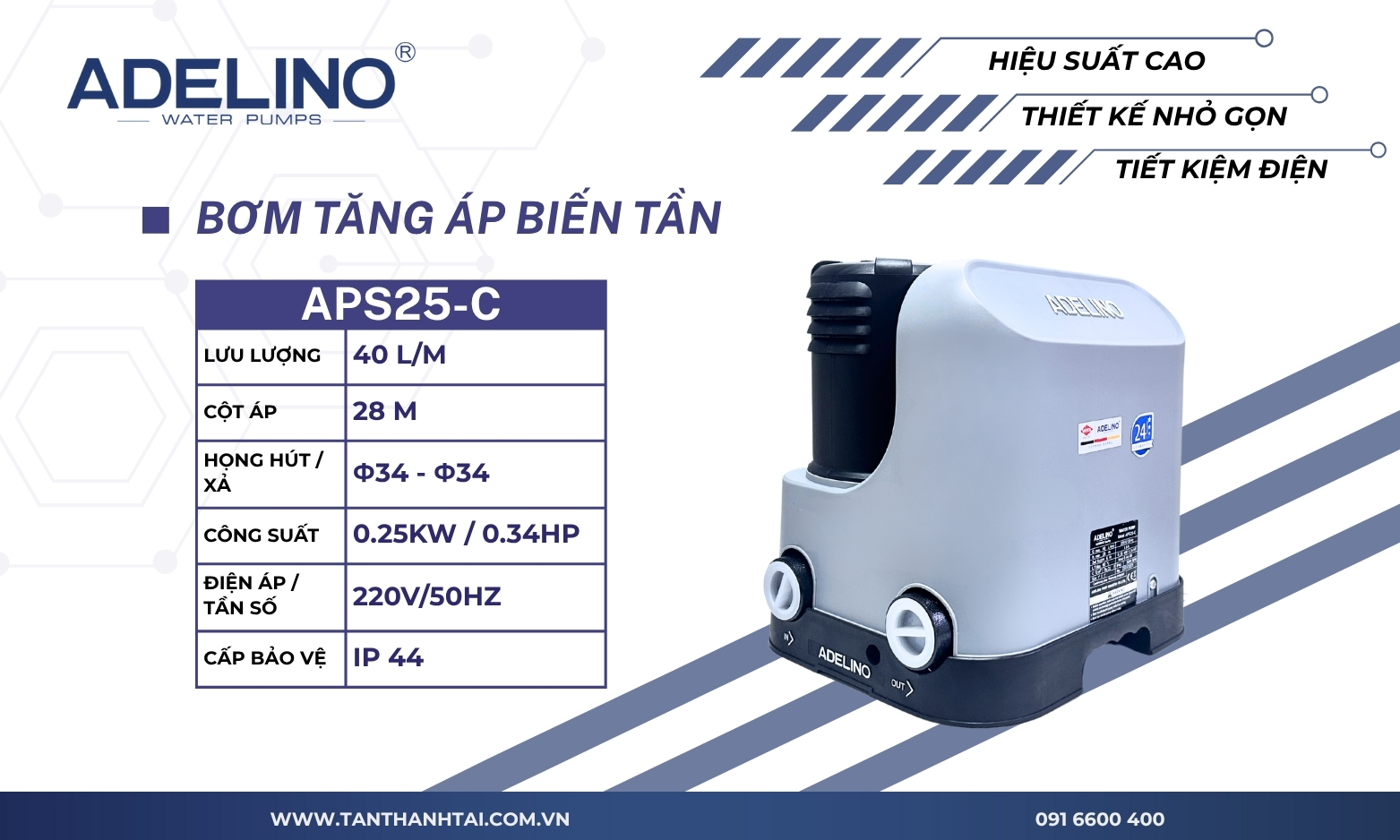 Trong thời đại hiện nay, nhu cầu sử dụng nước trong các hộ gia đình và công trình dân dụng ngày càng cao. Tình trạng nước yếu, áp lực thấp, đặc biệt ở các tầng cao, thường khiến sinh hoạt bị gián đoạn. Đó chính là lý do dòng bơm tăng áp biến tần ADELINO APS25-C ra đời – giải pháp hoàn hảo giúp ổn định áp lực nước tự động, tiết kiệm điện năng và kéo dài tuổi thọ hệ thống đường ống.